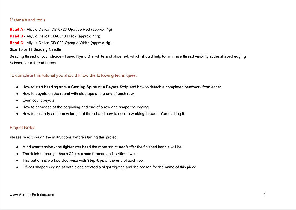 My goal as an artist is to create one-of-a-kind jewellery pieces, but I also would like to give you the option to bead-weave your own versions of some of my exclusive designs. On this page you will find tutorials which include detailed photographs and illustrations which enables you to successfully create your own version of my jewellery, from a pair of earrings to a brooch, or a lovely bangle to a fab bling-ring!